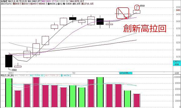 20131209 創新高8495就拉回,20131211 開低8427,拉回幅度 68 點