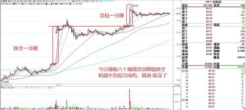 今日主要漲幅是由跳空和盤中一分K急拉完成的