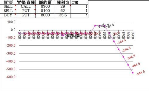 組起來是周末教得跌深進場法,但是CALL價格低所以沒有組出大跌還賺錢的部位