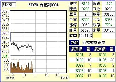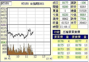 開8200 跌 83 , 持續下跌到8167 跌116