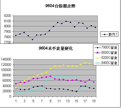 其中7900和8000的CALL 在4/13突破7900到7919的多頭走勢時 留倉口數減少