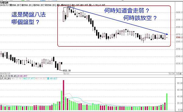 獨大 : 開盤八法其實就是看波形波向,我是覺得不用死背,會看走勢圖就自然可以判斷後勢怎走 (延伸閱讀 20130113 看盤日記 早盤放空),再加個修正機制就好。