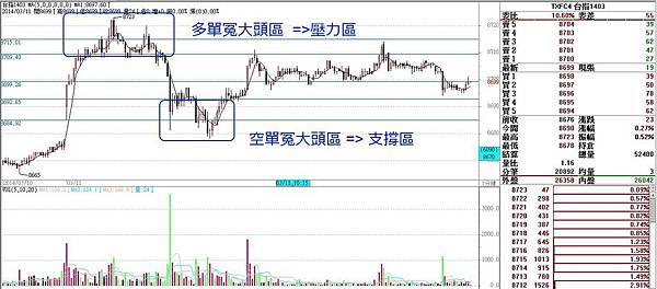 今天盤整區間由多空兩個冤大頭區所構成