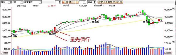以下是我用程式寫的 [量先價行] 指標 ,黑色的字寫著 "量_買點",紅色的字寫著 "價_買點"