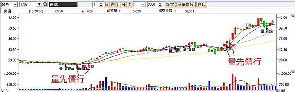 圖七 一樣用南喬來舉例,[量先價行] 買進訊號 在一次比價格買進訊號還要早